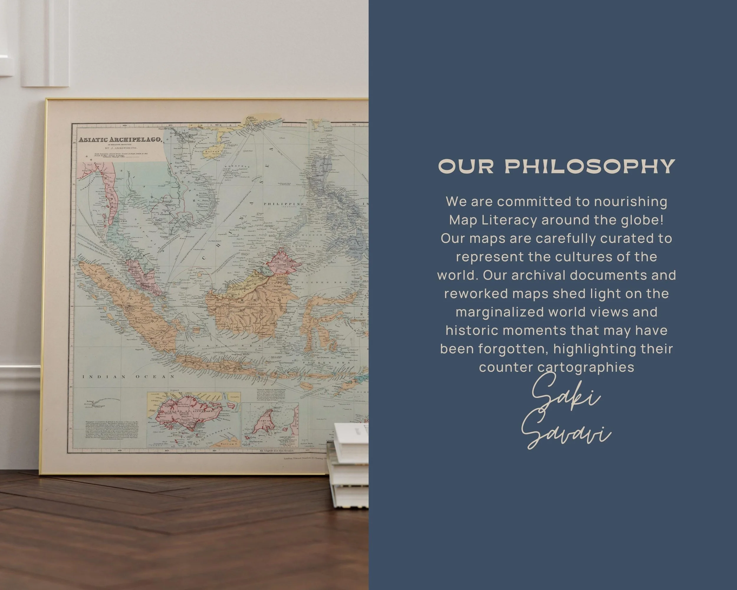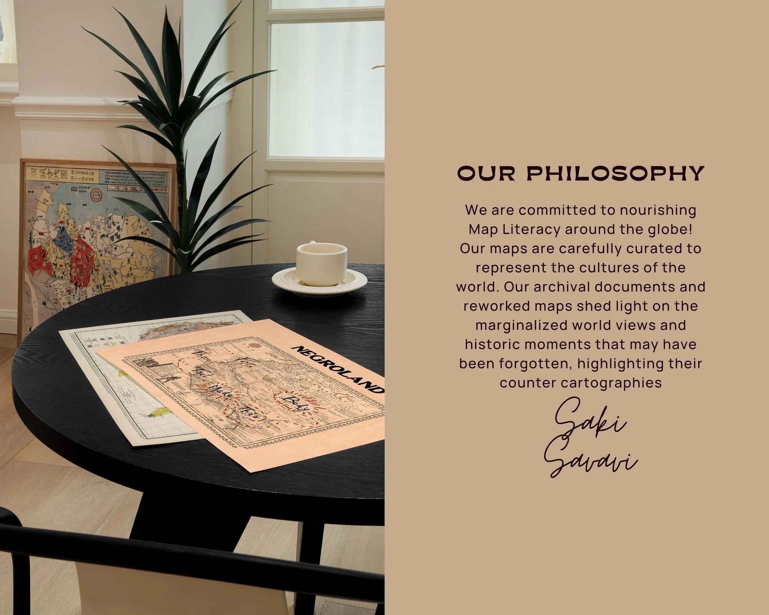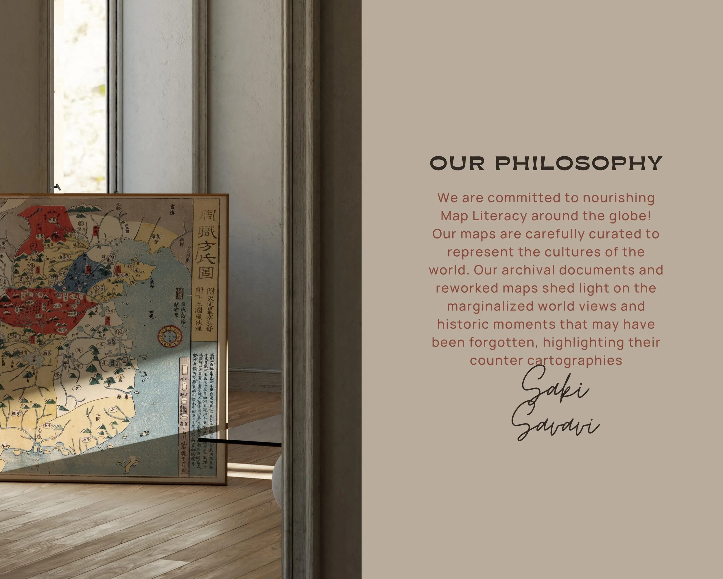 At the crossroads of historical cartography and contemporary consciousness, our atelier reimagines the geography of human understanding. Each map in our collection invites you to traverse the boundaries between past and present, science and art - creating tools for the modern global citizen with a passion for cultural exploration.
