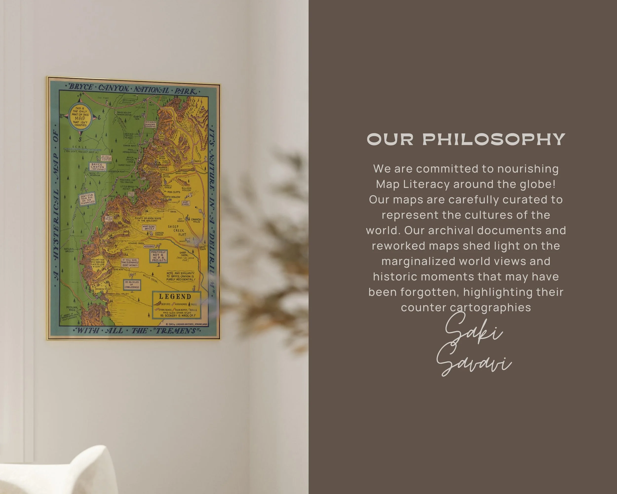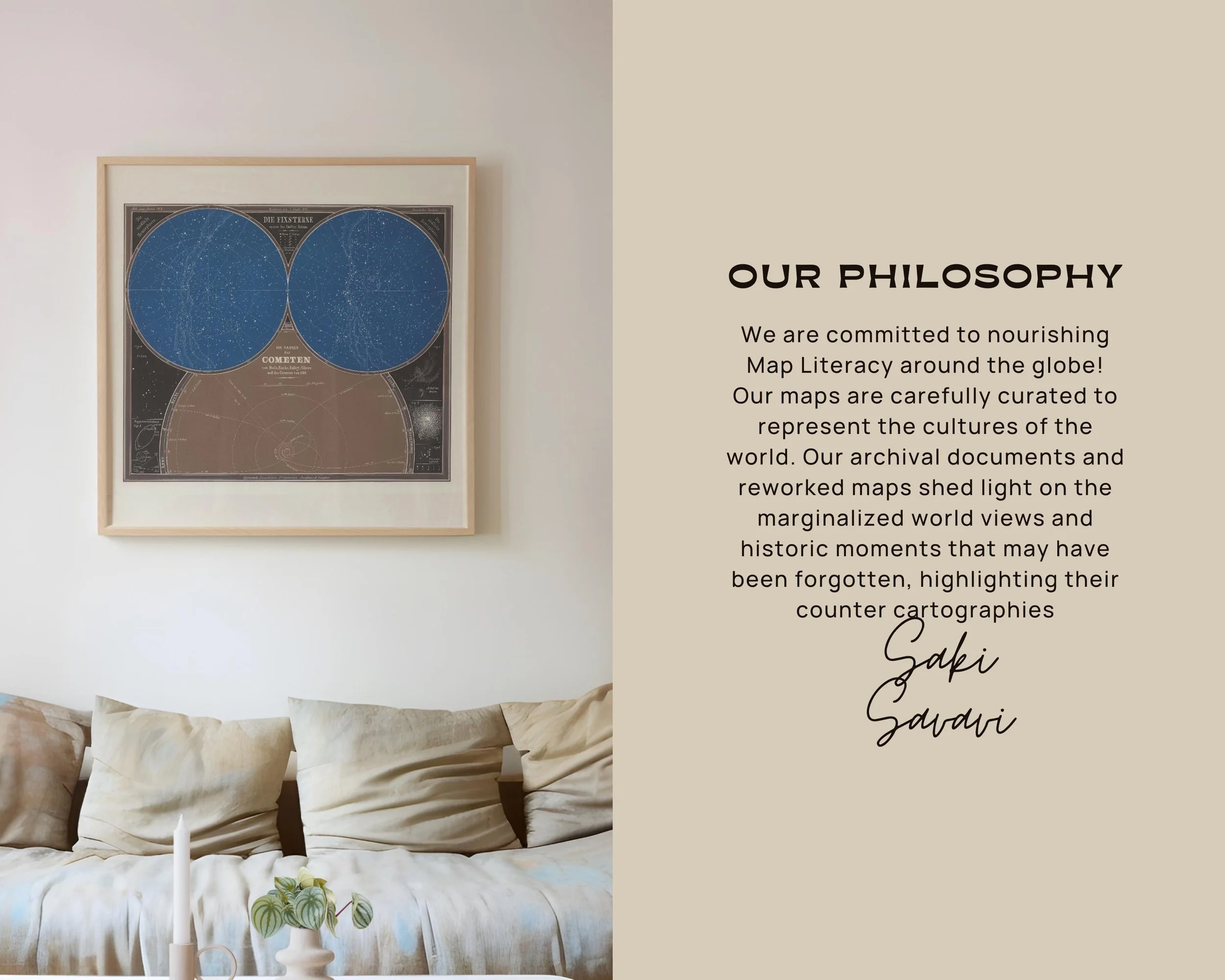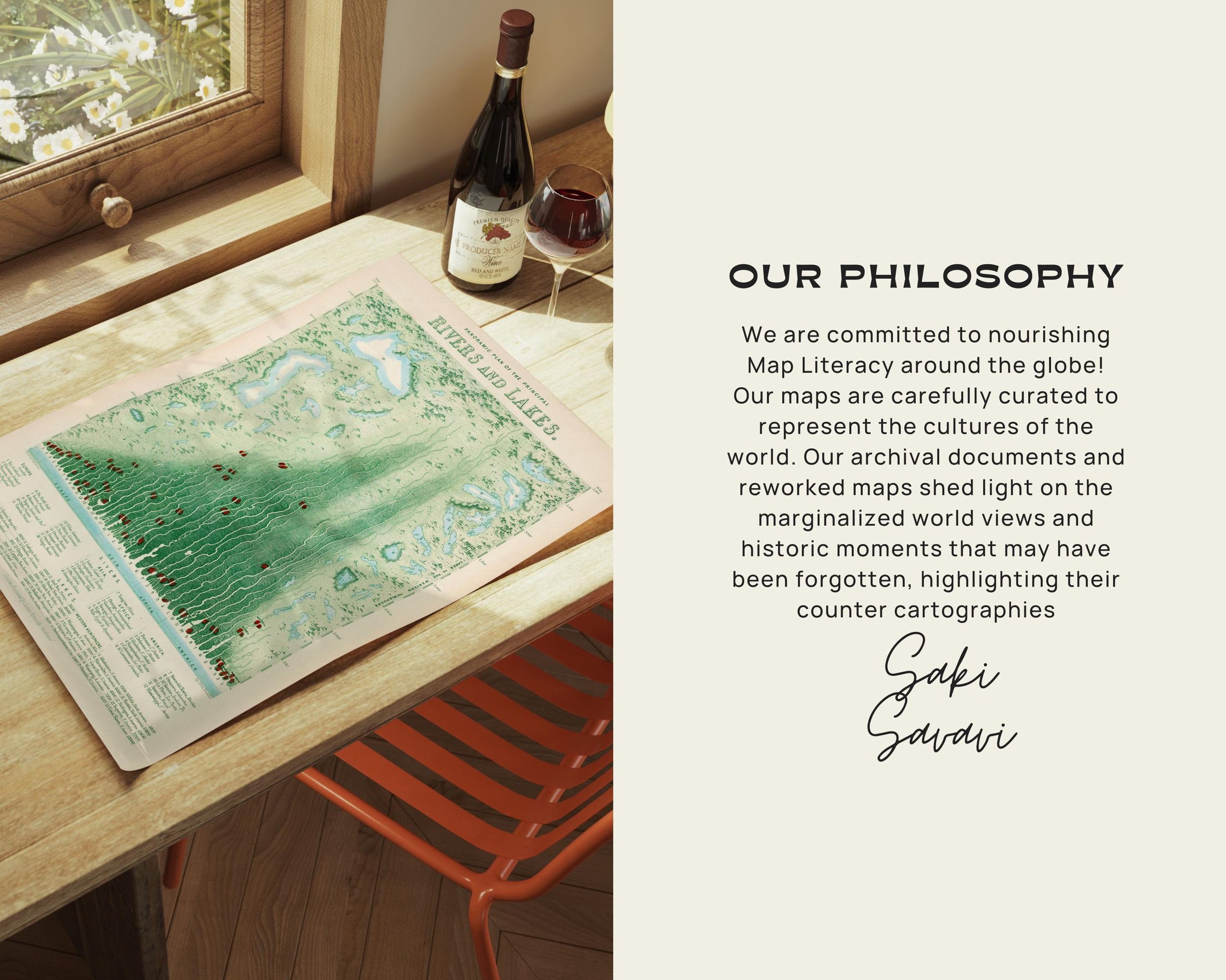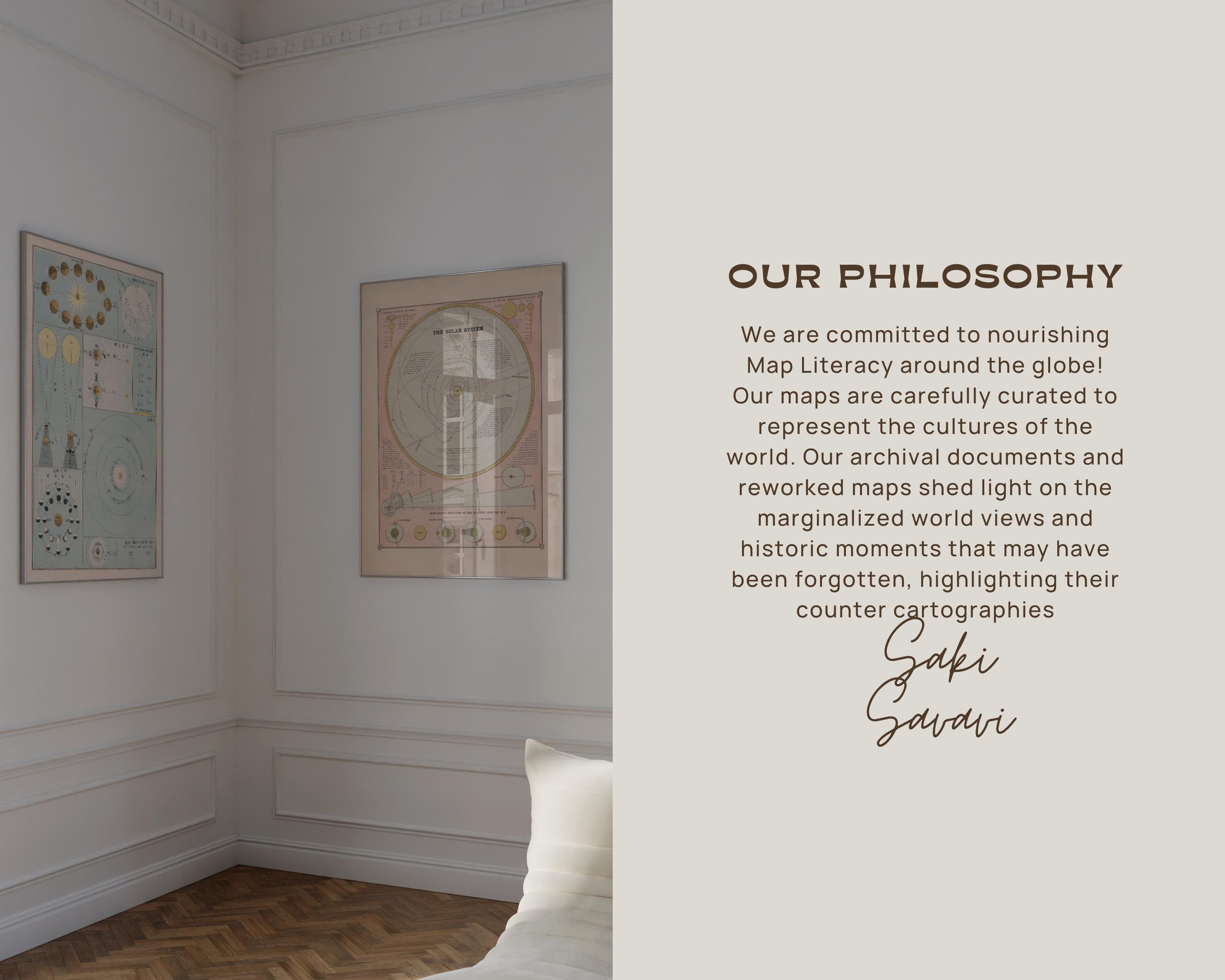 At the crossroads of historical cartography and contemporary consciousness, our atelier reimagines the geography of human understanding. Each map in our collection invites you to traverse the boundaries between past and present, science and art - creating tools for the modern global citizen with a passion for cultural exploration.